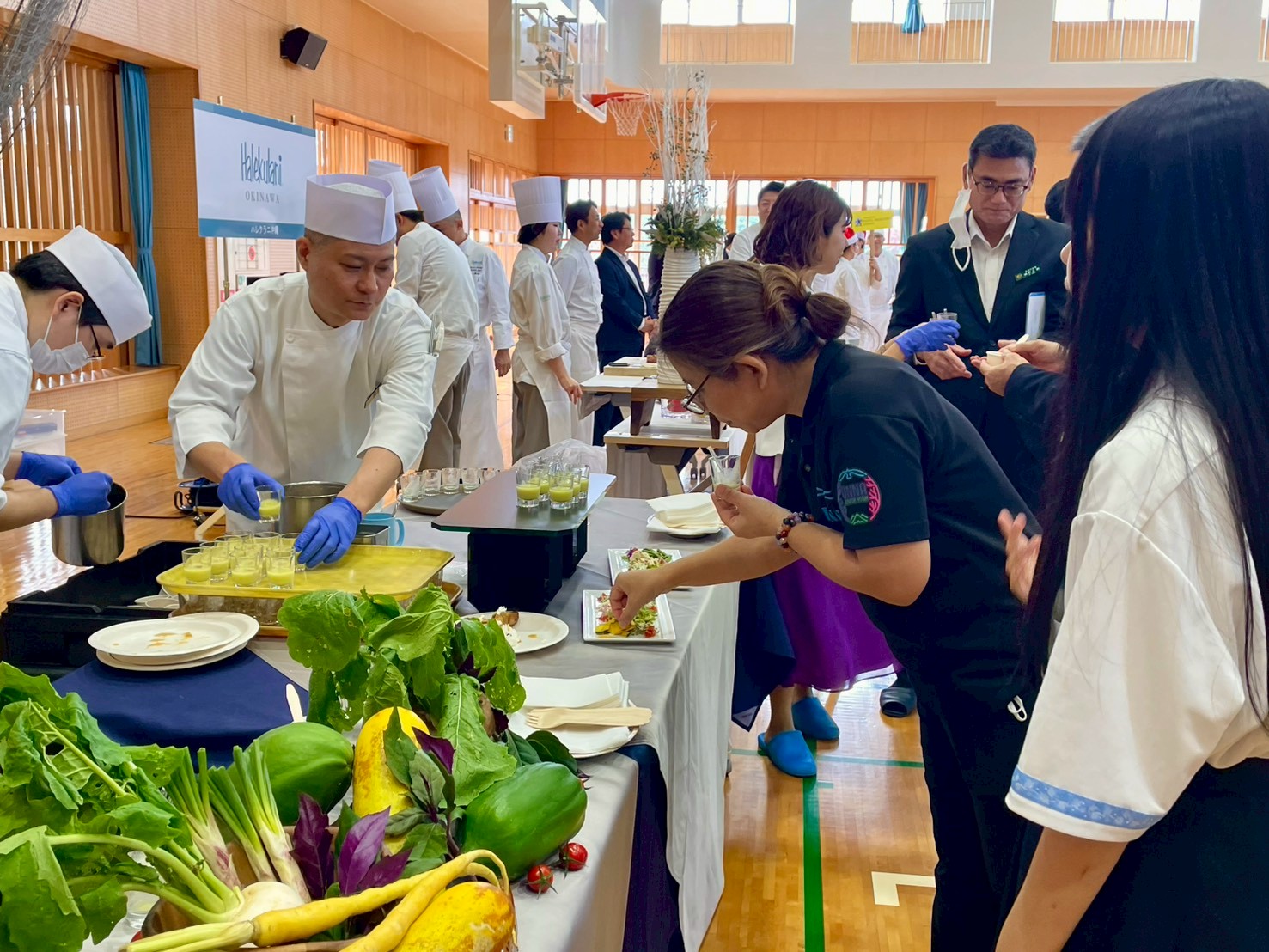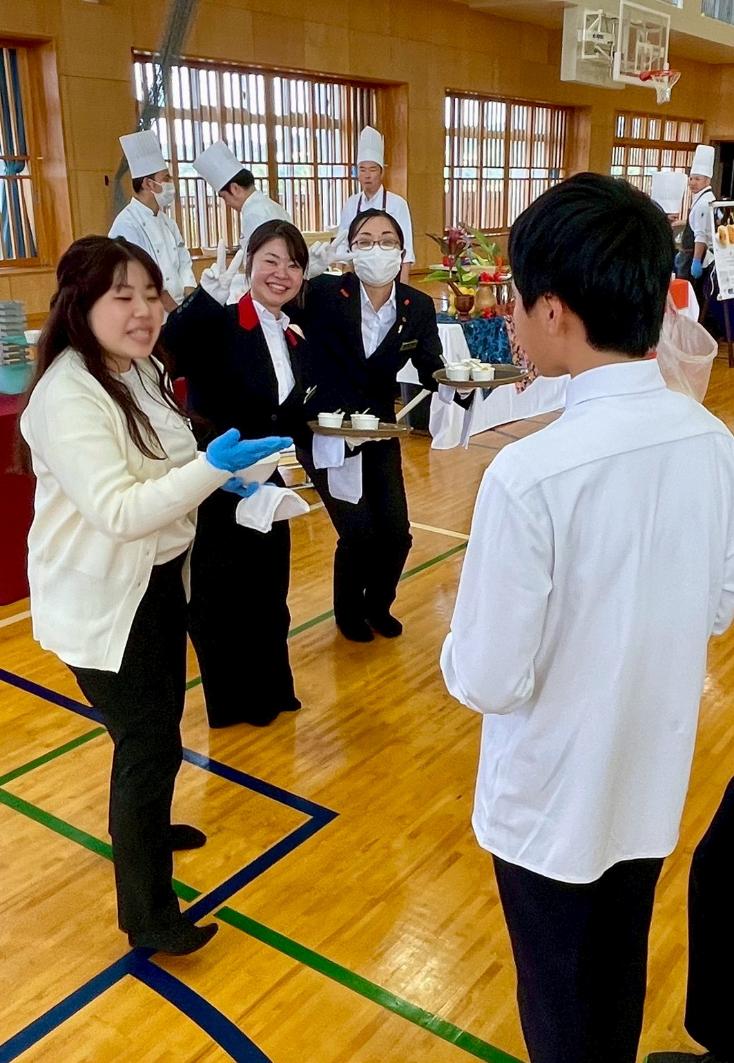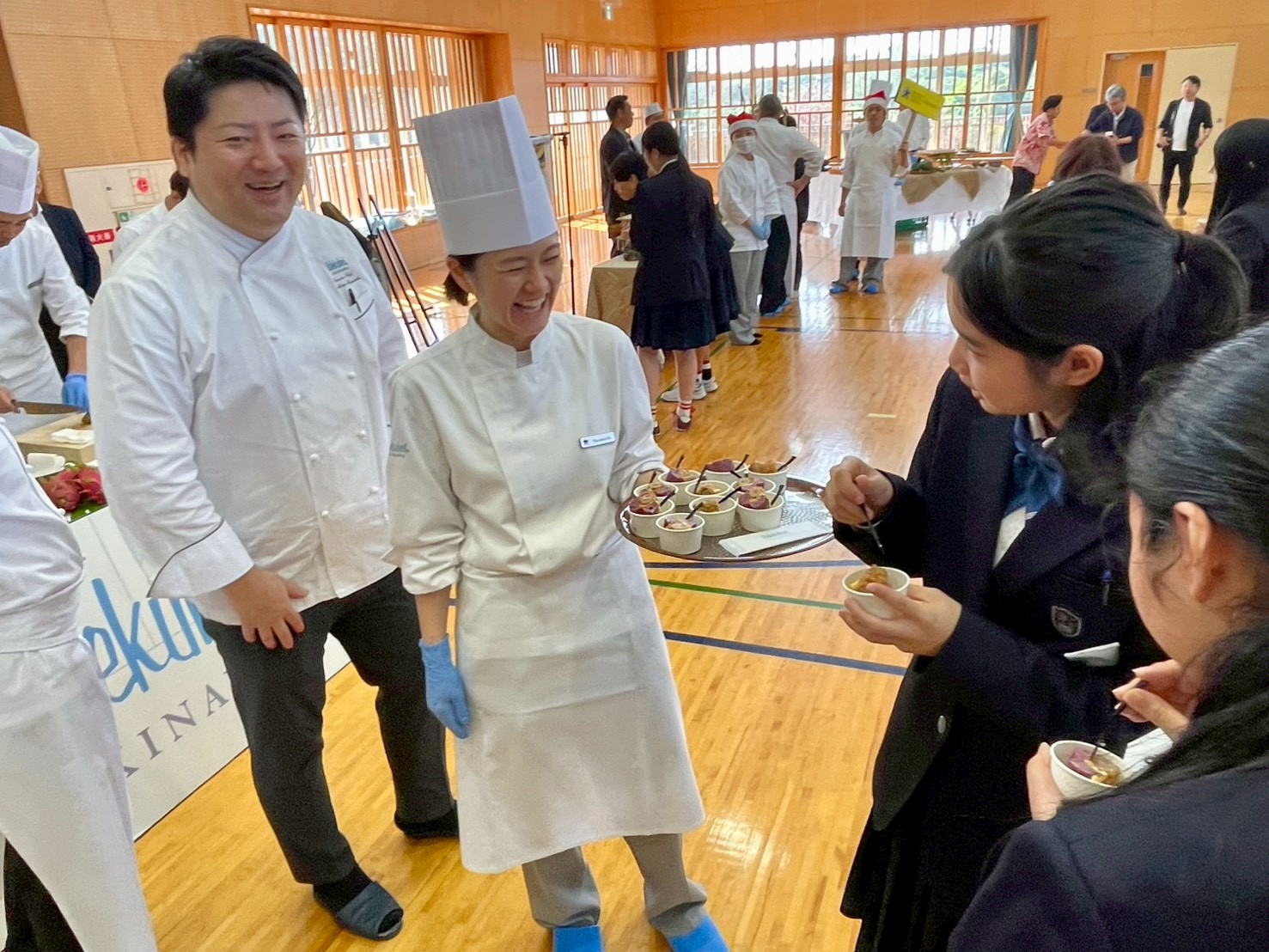 料理を振る舞うホテルスタッフさんも学生さん達もどちらも笑顔の花があちこちに咲いていました🌸